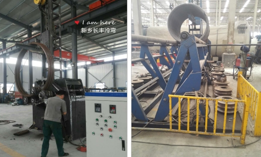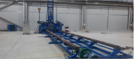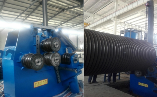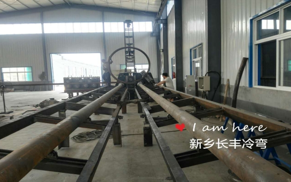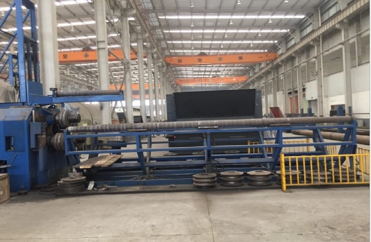 主要由基礎(chǔ)軌道系統(tǒng)、螺旋盤管主機(jī)、螺旋管立支撐料架、螺旋管水平出料料架、液壓系統(tǒng)、電控系統(tǒng)、模具等部分組成。